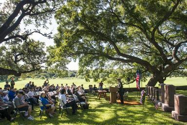 | Keywords: dsc_2274.nef dsc2274nef austin tx usa plant tree outdoor The Lyndon B. Johnson National Historical Park celebrated the 108th anniversary of President Johnson’s birth with a ceremony at 10:00 am on Saturday, August 27. Continuing a tradition that Lady Bird Johnson began in 1973, a wreath was placed at the president’s gravesite in the Johnson family cemetery at the LBJ Ranch by Park Superintendent Russ Whitlock and Brigadier General Heather L. Pringle. After the ceremony, park staff members commemorated the National Park Service Centennial by reading the names of the 47 national park units established during Lyndon Johnson’s presidency. LBJ Library photo by Jay Godwin 08/27/2016 The Lyndon B. Johnson National Historical Park celebrated the 108th anniversary of President Johnson’s birth with a ceremony at 10:00 am on Saturday, August 27. Continuing a tradition that Lady Bird Johnson began in 1973, a wreath was placed at the president’s gravesite in the Johnson family cemetery at the LBJ Ranch by Park Superintendent Russ Whitlock and Brigadier General Heather L. Pringle. After the ceremony, park staff members commemorated the National Park Service Centennial by reading the names of the 47 national park units established during Lyndon Johnson’s presidency. LBJ Library photo by Jay Godwin 08/27/2016 |