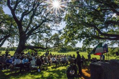 | Keywords: dsc_4248.nef dsc4248nef austin tx usa plant tree outdoor The Lyndon B. Johnson National Historical Park celebrated the 108th anniversary of President Johnson’s birth with a ceremony at 10:00 am on Saturday, August 27. Continuing a tradition that Lady Bird Johnson began in 1973, a wreath was placed at the president’s gravesite in the Johnson family cemetery at the LBJ Ranch by Park Superintendent Russ Whitlock and Brigadier General Heather L. Pringle. After the ceremony, park staff members commemorated the National Park Service Centennial by reading the names of the 47 national park units established during Lyndon Johnson’s presidency. LBJ Library photo by Jay Godwin 08/27/2016 The Lyndon B. Johnson National Historical Park celebrated the 108th anniversary of President Johnson’s birth with a ceremony at 10:00 am on Saturday, August 27. Continuing a tradition that Lady Bird Johnson began in 1973, a wreath was placed at the president’s gravesite in the Johnson family cemetery at the LBJ Ranch by Park Superintendent Russ Whitlock and Brigadier General Heather L. Pringle. After the ceremony, park staff members commemorated the National Park Service Centennial by reading the names of the 47 national park units established during Lyndon Johnson’s presidency. LBJ Library photo by Jay Godwin 08/27/2016 |
