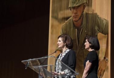 | Keywords: The daughters of President Lyndon Johnson and Lady Bird Johnson speak at the LBJ Presidential Library on Tuesday, April 26, 2016, before the appearance of former U.S. Secretary of State Henry Kissinger. At left, Lynda Johnson Robb reads a letter written to LBJ from Vietnam by her husband, Chuck Robb, who went on to become governor and U.S. senator from Virginia. At right, Luci Baines Johnson prepares to read a letter written to LBJ from Vietnam by her former husband, Pat Nugent. Kissinger, 92, who was also national security advisor for Presidents Richard Nixon and Gerald Ford, played a leading role in U.S. diplomatic and military policy during the Vietnam War. He was the keynote evening speaker on the first day of the LBJ Presidential Library’s three-day Vietnam War Summit. LBJ Library photo by Nick Ut 04/26/2016. The daughters of President Lyndon Johnson and Lady Bird Johnson speak at the LBJ Presidential Library on Tuesday, April 26, 2016, before the appearance of former U.S. Secretary of State Henry Kissinger. At left, Lynda Johnson Robb reads a letter written to LBJ from Vietnam by her husband, Chuck Robb, who went on to become governor and U.S. senator from Virginia. At right, Luci Baines Johnson prepares to read a letter written to LBJ from Vietnam by her former husband, Pat Nugent. Kissinger, 92, who was also national security advisor for Presidents Richard Nixon and Gerald Ford, played a leading role in U.S. diplomatic and military policy during the Vietnam War. He was the keynote evening speaker on the first day of the LBJ Presidential Library’s three-day Vietnam War Summit. LBJ Library photo by Nick Ut 04/26/2016. |