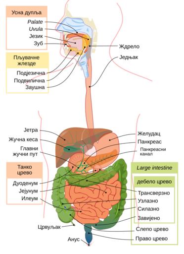 | Keywords: Digestive system diagram sr.svg sr Шематски п иказ гаст оинтестиналног т акта човека Image Digestive system diagram en svg Mariana Ruiz LadyofHats Labels translated into Serbian by Kale 2006-12-17 LadyofHats Template Other versions/Digestive system diagram translation possible SVG human digestive system |