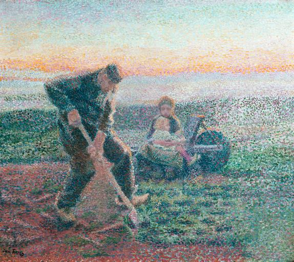 | Keywords: Digging farmer, by Jan Toorop.jpg en Digging farmer with wife and child on a wheelbarrow oil on canvas 66 x 75 cm signed b l Jan Toorop circa 1888 https //rkd nl/explore/images/112044 ~ 1888 Gemeentemuseum Den Haag Creator Jan Toorop other versions PD-old-70 Uploaded with UploadWizard Paintings by Jan Toorop 1888 Dutch 19th-century paintings in the Gemeentemuseum Den Haag | ||||