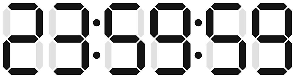 Keywords: Digital clock display 235959.svg en SVG digital clock example 23 59 59 own Andy0101 2 12 2009 File Digital_clock_display_8888 svg File Digital_clock_display_888888 svg Digital clocks Time 23 59