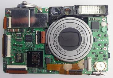 | Keywords: Digital compact camera Canon Digital IXUS 400 without housing.jpg de Frontansicht Kompaktkamera Canon IXUS 400 ohne Gehäuse en Frontal view compact camera Canon Digital IXUS 400 housing removed 2014-08-28 13 10 39 own LordOider cc-zero Uploaded with UploadWizard Canon Digital IXUS 400 Disassembled digital cameras |