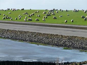 Keywords: dike dike road north sea nordfriesland sheep grass sweet idyll