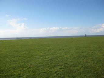 Keywords: dike meadow horizon grass north sea sea watts lonely blue green