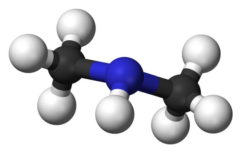 Keywords: Dimethylamine-3D-balls-B.png Ball-and-stick model of the dimethylamine molecule Derived from File Methylamine-3D-balls png and File Methane-3D-balls png 2010-06-11 Ben Mills and Jynto Dimethylamine Images by Jynto Ball-and-stick models