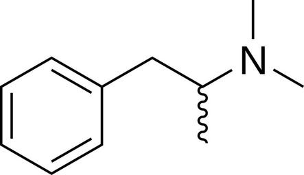 Keywords: Dimethylamphetamine.svg en 2D structure of dimethylamphetamine Own Harbin 2009-01-15 Amphetamines