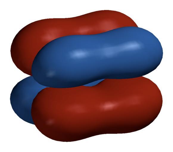 Keywords: Dimolybdenum-Mo2-delta-bond-Spartan-HF-3-21G-3D-side.png Boundary surface of a delta bond bonding molecular orbital with δ symmetry Own 2009-05-21 Ben Mills Benjah-bmm27 Images by Ben Mills Molecular orbitals