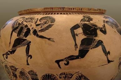 | Keywords: Dinos Gorgon Painter Louvre E874.jpg Artwork Creator Gorgon Painter Untitled langSwitch So-called Gorgon Painter's dinos black-figure technique with crimson appreciations From Etruria ca 580 BC Detail of the shoulder Perseus followed by the Gorgons after the murder of their sister Medusa « Dinos du Peintre de la Gorgone » technique des figures noires avec des rehauts pourpres Provenance Étrurie v 580 av J -C Détail de l'épaule fuite de Persée poursuivi par les Gorgones après le meurtre de leur sœur Méduse Dinos ateniese Dettaglio della decorazione sulla spalla Perseo inseguito dalle Gorgoni ~ 600 580 BC black-figure terracotta Size cm 30 93 Museum Louvre Department of Greek Etruscan and Roman Antiquities Denon wing entresol room 1 Beazley ABV 8 1; Add2 2 object history credit line Campana Collection 1861 accession number E 874 User Bibi Saint-Pol own work 2007-04-30 other versions <gallery> File Dinos du Peintre de la Gorgone jpg Full dinos File Dinos du Peintre de la Gorgone - frag 1 jpg Detail File Dinos du Peintre de la Gorgone - frag 2 jpg Detail </gallery> Perseus and Medusa Gorgons in ancient Greek pottery Pottery lebetes Gorgon Painter Greek antiquities in the Louvre - Room 1 580s BC pottery Vases from the Campana Collection Perseus in ancient Greek pottery |