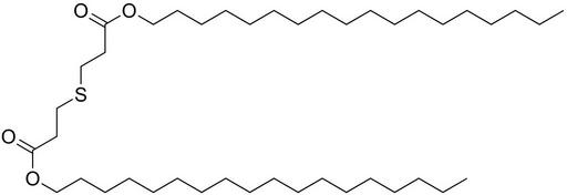 | Keywords: Dioctadecyl 3,3'-thiodipropanoate 100.svg validSVG Structure of dioctadecyl 3 3'-thiodipropanoate Own 2014-03-25 Emeldir <span class signature-talk >talk</span> Chemical structure verified https //upload wikimedia org/wikipedia/commons/5/5f/Dioctadecyl_3 2C3 27-thiodipropanoate_100 svg 1S/C42H82O4S/c1-3-5-7-9-11-13-15-17-19-21-23-25-27-29-31-33-37-45-41 43 35-39-47-40-36-42 44 46-38-34-32-30-28-26-24-22-20-18-16-14-12-10-8-6-4-2/h3-40H2 1-2H3 PWWSSIYVTQUJQQ-UHFFFAOYSA-N 693-36-7 PD-chem Aging inhibitors Thioethers Esters |