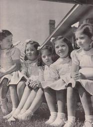 | Keywords: dionne quintuplets girl rare 1950 people groupshot I found the story of there lives in a box, so I wanted to give it to the world. This is there story. All photos are creative commons for they are not my work. I found it hard to believe some person would spend a lifetime collecting everything about them and then just sell them at a market. The Dionne Quintuplets (born May 28, 1934) are the first quintuplets known to survive their infancy. The sisters were born in Canada south of North Bay, Ontario, just outside Callander, Ontario, near the village of Corbeil. The Dionne girls were born two months premature. After four months with their family, they were made Wards of the King for the next nine years under the Dionne Quintuplets' Guardianship Act, 1935. The government and those around them began to profit by making them a significant tourist attraction in Ontario. I found the story of there lives in a box, so I wanted to give it to the world. This is there story. All photos are creative commons for they are not my work. I found it hard to believe some person would spend a lifetime collecting everything about them and then just sell them at a market. The Dionne Quintuplets (born May 28, 1934) are the first quintuplets known to survive their infancy. The sisters were born in Canada south of North Bay, Ontario, just outside Callander, Ontario, near the village of Corbeil. The Dionne girls were born two months premature. After four months with their family, they were made Wards of the King for the next nine years under the Dionne Quintuplets' Guardianship Act, 1935. The government and those around them began to profit by making them a significant tourist attraction in Ontario. |