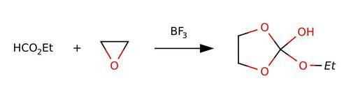 Keywords: Dioxolan-Orthoester.Epoxy.Synthesis.svg en Synthesis of dioxolan orthoester 2-ethoxy-1 3-dioxolan-2-ol by reaction of oxirane and ethylformate own Kurgus 2010-06-19 Orthoesters Dioxolanes Epoxides