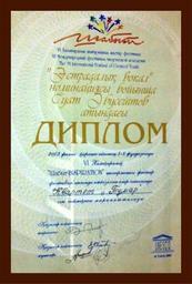 | Keywords: Diplom Tumar Shabyt-2013.jpg en The competition Shabyt-2003 diploma awarded to Tumar group ru Диплом конку са Шабыт-2003 п исужденный г уппе Тума http //vk com/photo20333554_333552359 all 1 Е жан Кабдуллин 01 11 2013 Cc-zero Uncategorized 2014 July 5 |