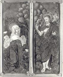 | Keywords: Diptych Noli me tangere.jpg Diptych Noli me tangere Christ after Resurrection and St Mary Magdalene Dyptyk Noli me tangere Chrystus Zmartwychwstały i św Maria Magdalena Enamel copper cm 7 5 21 Object history Catalogue of stolen and missing cultural achievements / comp Jan Świeczyński; Ośrodek Informacyjno-Koordynacyjny Ochrony Obiektów Muzealnych Warsaw 1988 Editor Wojciech Jaskulski Piotr Ogrodzki See also http //kolekcje mkidn gov pl/katalog/podglad ID 11445 Department of National Heritage Wartime losses an official webpage of Polish Ministry of Culture Art and National Heritage century 15 Nardon Pénicaud Limoges Other versions Photo Photo Polish Ministry of Culture Art and National Heritage author < 1939 PD-Polish Anonymous-EU Metalwork lost in Poland during World War II Noli me tangere Limoges enamel - 15th century |