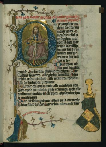 Keywords: Dirc van Delft - The Trinity (Throne of Grace), with Albrecht of Bavaria - Walters W1711R - Full Page.jpg This folio from Walters manuscript W 171 depicts a kneeling man in lower margin holds a scroll inscribed Ghif mi heer ware ghelove Opposite this figure a helm with a crest and shield bears coat of arms of Albrecht of Bavaria between 1400 1404 Medieval ink pigments parchment cm 18 8 13 7 accession number W 171 1R 79679 Albert Duke of Bavaria and Count of Holland 1389-1404 Utrecht ca 1404-1405 by commission Gruel and Engelman Paris date and mode of acquisition unknown no 93 Henry Walters city Baltimore Walters Art Museum Henry Walters Acquired by Henry Walters 1931 The Origins of Dutch Painting Manuscripts from the Fifteenth Century The Walters Art Gallery Baltimore 1998 Mirror of a Medieval World The Hours of Catherine of Cleves Museum Het Valkhof Nijmegen Nijmegen 2009-2010 place of origin Utrecht Netherlands Walters Art Museum license 2D Walters MS W171 - Duke Albrecht's Table of Christian Faith Winter Part Throne of Mercy in miniatures Media contributed by the Walters Art Museum needs category review Albrecht I Duke of Bavaria Praying in medieval miniatures Coats of arms in medieval miniature