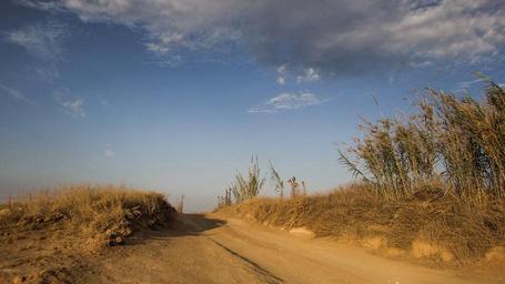 Keywords: dirt road countryside dusty autumn clouds sky reeds landscape rural scenery cyprus