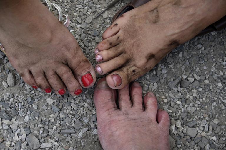 Keywords: dirty feet dirt pebbles human women toes hiking