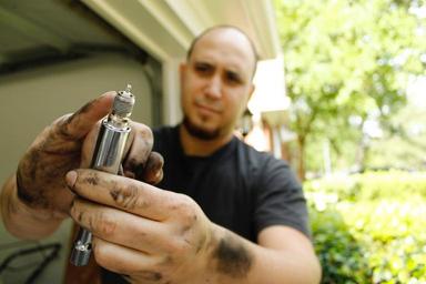 Keywords: dirty hands man work male repair spark plug