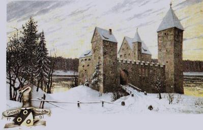 | Keywords: Dischler Schloss Schwörstadt.jpg de Burg Schwörstadt vor dem Brand von 1797; Ölgemälde Wolfgang Klein Schwörstadt eine alte Gemeinde am Hochrhein In Das Markgräflerland Band 2/1997 S 7 Creator Hermann Dischler before 1935 Schloss Schwörstadt Hermann Dischler PD-old |