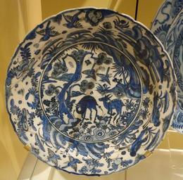 | Keywords: Dish copying a Chinese landscape with deer, black seal-mark on base, Iran, Isfahan, early 17th century, underglaze-painted stonepaste - Royal Ontario Museum - DSC04814.JPG en Exhibit in the Royal Ontario Museum Toronto Ontario Canada This work is old enough so that it is in the public domain Photography was permitted in the museum without restriction 2013-10-08 17 25 49 own Daderot cc-zero Ceramics of Iran in the Royal Ontario Museum Uploaded with UploadWizard | ||||