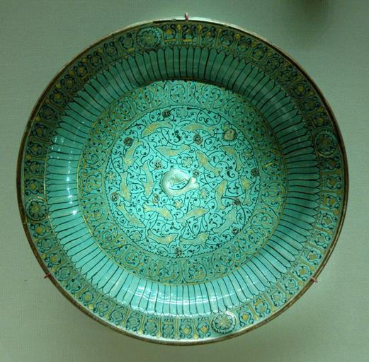| Keywords: Dish fish Louvre OA6456.jpg Dish with fish of the ladjvardina cobalt type Earthenware with stain and gilded decoration coloured opacified glaze overglaze painted Iran late 13th century-early 14th century Plat à la ronde de poissons du type ladjvardina « cobalt » Céramique siliceuse à décor de petit feu et doré sur glaçure opacifiée colorée Iran fin du XIIIe siècle début du XIVe siècle Museum Louvre Department of Islamic Art Richelieu lower ground floor room 10 object history credit line Purchase 1911 accession number OA 6456 Jastrow 2006 other versions Ceramics of Iran in the Louvre Ceramic plates Fish in pottery Shapes resembling number 0 |