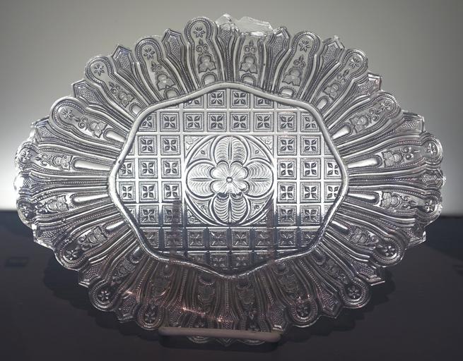 | Keywords: Dish, probably New England, 1830-1845, glass - Bennington Museum - Bennington, VT - DSC08895.JPG en Exhibit in the Bennington Museum - Bennington Vermont USA This work is in the public domain because the artist died more than 70 years ago Photography was permitted in the museum without restriction 2015-02-28 13 50 47 own Daderot other versions PD-old-70 cc-zero Glassware in the Bennington Museum | ||||
