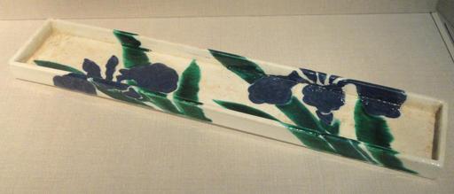 | Keywords: Dish with design of Eightfold Bridge, Ogata Ihachi, Japan, Edo period, mid 18th century, earthenware with enamels and iron pigment under transparent lead glaze - Freer Gallery of Art - DSC05505.JPG en Exhibit in the Freer Gallery of Art Washington DC USA This artwork is old enough so that it is in the public domain Photography was permitted in the museum without restriction 2013-02-12 15 30 46 own Daderot cc-zero Uploaded with UploadWizard Ceramics of Japan in the Freer Gallery of Art Lead-glazing |