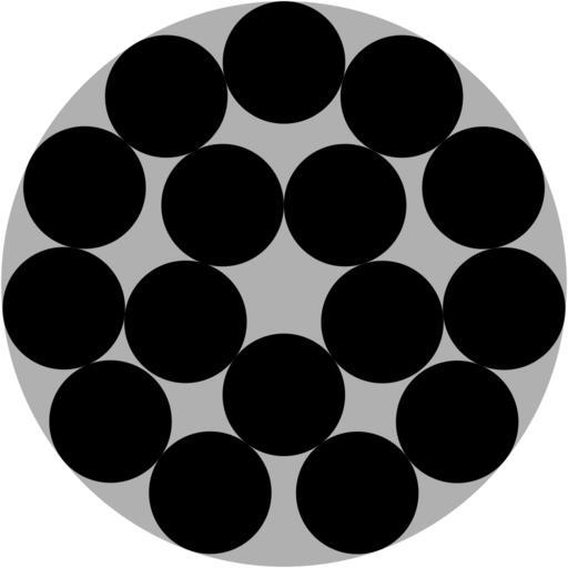 Keywords: Disk pack16.svg en Optimal circle packing for the circles in circles problem case n 16 own Patrick87 2013-07-27 Bounded circle packings