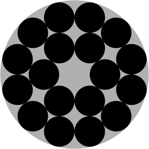 Keywords: Disk pack18.svg en Optimal circle packing for the circles in circles problem case n 18 own Patrick87 2013-07-27 Bounded circle packings