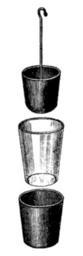 | Keywords: Dissectible Leyden jar.png Drawing of a dissectible Leyden jar from 1876 physics book This experimental apparatus invented by American statesman and scientist Benjamin Franklin was used to illustrate an erroneous belief that the charge on a Leyden jar does not reside on the metal plates but on the glass jar dielectric The jar was assembled and charged with electricity If the jar was then disassembled into its parts it was found that the parts were not charged and could be handled without creating a spark However if the jar was then reassembled a spark could be obtained between the inner and outer metal plates This was supposed to show that the charge in Leyden jars and all capacitors is stored in the dielectric not the metal plates However it is now known that this was a special effect caused by the high voltage on the Leyden jar When the jar is disassembled the charge is deposited on the glass by corona discharge Handling does not remove much of the charge so when the jar is reassembled there is enough left to cause a spark In general the charge in capacitors such as Leyden jars is stored on the plates Downloaded 2010 from http //books google com/books id Yi9AAAAAYAAJ pg PA79 John Tyndall 1876 Lessons in Electricity at the Royal Institution 1875-6 Longmans Green Co London p 79 fig 43 on Google Books 1876 John Tyndall Public domain - John Tyndall died 1893 PD-old Leyden jars |