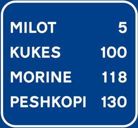 Keywords: Distance road sign-ALB.svg Distance road sign in Albania font Transport Heavy/Transport Regular own 2010-09-17 Rl91 Diagrams_of_road_signs_of_Albania