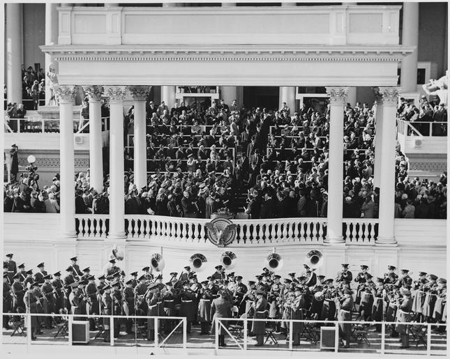 Keywords: Distance view of the inauguration of President Truman showing the President walking to his seat. - NARA - 199983.tif Scope and content General notes 199983 Local identifier National Archives and Records Administration Office of Presidential Libraries Harry S Truman Library 04/01/1985 - Creator Abbie Rowe Harry S Truman Library NLHST 500 West U S Highway 24 Independence MO 64050-1798 1949-01-20 Record group Collection HST-AVC Audiovisual Collection 1957 - 2006 Record group ARC 1207 Photographs Relating to the Administration Family and Personal Life of Harry S Truman compiled 1957 - 2004 documenting the period 1849 - 2004 Series ARC 198606 File unit File unit ARC Variant control numbers NAIL Control Number NLT-AVC-PHT-73 2825 yes Other versions <gallery> File Distance_view_of_the_inauguration_of_President_Truman_showing_the_President_walking_to_his_seat _-_NARA_-_199983 tif tif File Distance_view_of_the_inauguration_of_President_Truman_showing_the_President_walking_to_his_seat _-_NARA_-_199983 jpg jpg </gallery> NARA-cooperation PD-USGov Photographs by Abbie Rowe Black and white photographs NARA TIF images with categorized JPGs |