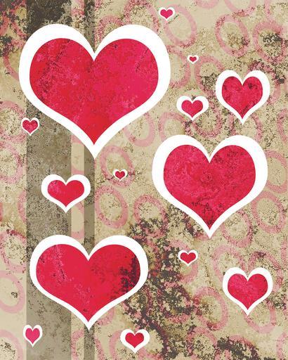 Keywords: red white brown hearts love stained distressed weathered background pattern