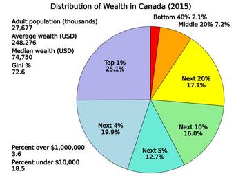 | Keywords: Distribution of Wealth in Canada.svg translate yes en Wealth shares of different percentile groups in Canada in 2015 Data from Credit Suisse http //publications credit-suisse com/tasks/render/file/index cfm fileid C26E3824-E868-56E0-CCA04D4BB9B9ADD5 Table 6-5 Page 149 2016-07-20 own Delphi234 other versions cc-zero Distribution of wealth Economic inequality SVG pie charts | ||||