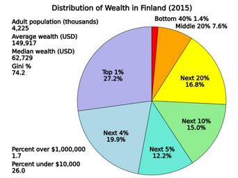 | Keywords: Distribution of Wealth in Finland.svg translate yes en Wealth shares of different percentile groups in Finland in 2015 Data from Credit Suisse http //publications credit-suisse com/tasks/render/file/index cfm fileid C26E3824-E868-56E0-CCA04D4BB9B9ADD5 Table 6-5 Page 149 2016-07-20 own Delphi234 other versions cc-zero Distribution of wealth Economic inequality SVG pie charts | ||||