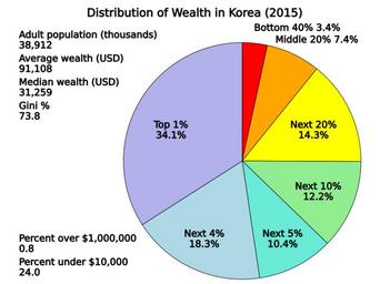 | Keywords: Distribution of Wealth in Korea.svg translate yes en Wealth shares of different percentile groups in Korea in 2015 Data from Credit Suisse http //publications credit-suisse com/tasks/render/file/index cfm fileid C26E3824-E868-56E0-CCA04D4BB9B9ADD5 Table 6-5 Page 149 2016-07-20 own Delphi234 other versions cc-zero Distribution of wealth Economic inequality SVG pie charts |