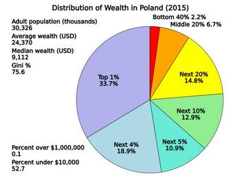 | Keywords: Distribution of Wealth in Poland.svg translate yes en Wealth shares of different percentile groups in Poland in 2015 Data from Credit Suisse http //publications credit-suisse com/tasks/render/file/index cfm fileid C26E3824-E868-56E0-CCA04D4BB9B9ADD5 Table 6-5 Page 149 2016-07-20 own Delphi234 other versions cc-zero Distribution of wealth Economic inequality SVG pie charts | ||||