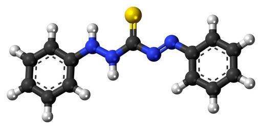 | Keywords: Dithizone 3D ball.png Ball-and-stick model of the dithizone molecule a chelating agent Colour code 505050 Carbon C black<br> F0F0F0 Hydrogen H white<br> 3C50FA Nitrogen N blue<br> FAEB00 Sulfur S yellow<br> 2011-07-03 own DS Visualizer Jynto talk Space-filling version cc-zero Images by Jynto thioureas Azo compounds Ball-and-stick models Chelating agents |