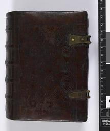 | Keywords: DIURNAL of the use of the Canons Regular of the Windesheim Congregation;. from the Priory of Our Lady and the Holy Apostle's at Utrecht. -Manuscript on parchment- - Upper cover (Add Ms 40153).jpg Style Unspecified; Caption Upper cover; Colour Unspecified; Edge Unspecified exhibition history Decorative Technique Unspecified; Cover Material Unspecified Probably written at Utrecht Initials in red and blue some with penwork Binding of oak boards covered with brown leather Each cover is divided by diagonal three-line fillets into twenty-four compartments twelve of lozenge shape the remainder forming segments of lozenges The lozenges contain four impressions of each of the following stamps pelican in her piety rectangular swan with star circular quatrefoil Iozenge-sahaped These stamps are reproduced by A Hulshof and M J Schretlen De Kunst der oude Boekbinders 1921 pl iii nos 3 10 11 and appear on books bound by the Brothers of the Common Life or of St Jerome at Utrecht The segments of lozenges bear impressions of two stamps a heart transfixed by two arrows in saltire surmounted by a star circular and a fleur-de-lys lozenge- shaped According to the South Kensington Catalogue of Book- bindings 1894 pp 168 169 the two stamps occur commonly on books belonging to the Augustinian Priory at Utrecht; they are reproduced by Hulshof and Schretlen op cit pl i nos 4 8 The evidence afforded by the occurrence of the various stamps on books at Utrecht suggests that the binding dates from the last quarter of the 15th century Remains of two brass clasps catching on to the Upper cover Belonged to the Priory of Our Lady and the Holy Apostles at Utrecht; see the inscription 16th cent Ad Regulares Ultraiectinos on f 372 b object history Text 15c; Utrecht; Unspecified object type Cc-zero place of creation Binding Netherlands place of discovery Unspecified British Library image http //www bl uk/catalogues/bookbindings/LargeImage aspx RecordId 020-000016340 ImageId ImageId 55711 Copyright BL DIURNAL of the use of the Canons Regular of the Windesheim Congregation; from the Priory of Our Lady and the Holy Apostle's at Utrecht Manuscript on parchment Uploaded with GWToolset DIURNAL of the use of the Canons Regular of the Windesheim Congregation; from the Priory of Our Lady and the Holy Apostle's at Utrecht Manuscript on parchment - Upper cover Add Ms 40153 http //www webarchive org uk/bldatasets/bindings/Add40153_FC jpg Bookbinding 15th-century bookbinding British Library Bookbindings Taken with Phase One P45+ |