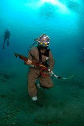 Keywords: diver salvage navy military ocean floor walking wrench tool equipment working underwater maintenance