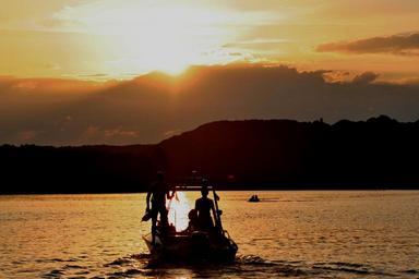 Keywords: dlrg sun setting sunset boot lifeboat sky mood evening nature dusk sunbeam water lake rest