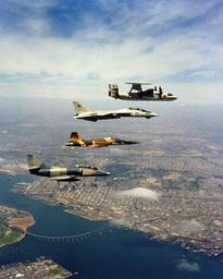 | Keywords: california (ca) californiaca united states of america (usa) unitedstatesofamericausa outdoor 330-CFD-DN-SC-85-00403: An air-to-air right side view (from top to bottom) of an E-2C Hawkeye aircraft from Airborne Early Warning Squadron 113 (VAW-113), an F-14 Tomcat aircraft from Fighter Squadron 124 (VF-124), an F-5E Tiger II aircraft from Fighter Squadron 126 (VF-126) and a TA-4 Skyhawk aircraft from Fighter Squadron 126 (VF-126),fly above San Diego, California, May 21, 1984. (OPA-NARA II-8/6/2015). 330-CFD-DN-SC-85-00403: An air-to-air right side view (from top to bottom) of an E-2C Hawkeye aircraft from Airborne Early Warning Squadron 113 (VAW-113), an F-14 Tomcat aircraft from Fighter Squadron 124 (VF-124), an F-5E Tiger II aircraft from Fighter Squadron 126 (VF-126) and a TA-4 Skyhawk aircraft from Fighter Squadron 126 (VF-126),fly above San Diego, California, May 21, 1984. (OPA-NARA II-8/6/2015). 330-CFD-DN-SC-85-00403: An air-to-air right side view (from top to bottom) of an E-2C Hawkeye aircraft from Airborne Early Warning Squadron 113 (VAW-113), an F-14 Tomcat aircraft from Fighter Squadron 124 (VF-124), an F-5E Tiger II aircraft from Fighter Squadron 126 (VF-126) and a TA-4 Skyhawk aircraft from Fighter Squadron 126 (VF-126),fly above San Diego, California, May 21, 1984. (OPA-NARA II-8/6/2015). unitedstatesofamericausa californiaca E-2C Hawkeye, F-14 Tomcat, F-5E Tiger II and TA-4 Skyhawk fly above San Diego.jpg An air-to-air right side view from top to bottom of an E-2C Hawkeye aircraft from Airborne Early Warning Squadron 113 VAW-113 an F-14 Tomcat aircraft from Fighter Squadron 124 VF-124 an F-5E Tiger II aircraft from Fighter Squadron 126 VF-126 and a TA-4 Skyhawk aircraft from Fighter Squadron 126 VF-126 fly above San Diego California May 21 1984 https //www flickr com/photos/127906254 N06/19719447283/ DN-SC-85-00403 1984-05-21 PHCS B Lawson <gallery>File E-2C F-14A F-5E and TA-4F in flight 1984 JPEG</gallery> PD-USGov-Military-Navy Leoboudv 2016-07-02 Northrop Grumman E-2C Hawkeye in flight Aircraft formation flight of F-14A Tomcat Aerial photographs of F-14 Tomcat in flight F-5 Tiger II TA-4F Skyhawk Fighter Squadron 124 United States Navy Fighter Squadron 126 United States Navy Airborne Early Warning Squadron 113 United States Navy Mixed aircraft formations |