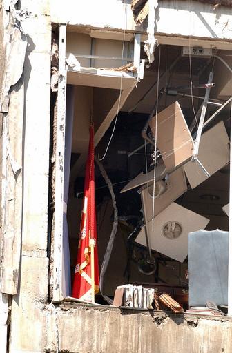 | Keywords: DN-SD-03-17508.JPEG  The next day a Marine flag appears undisturbed and clean amid office wreckage following the September 11 2001 terrorist attack The morning before in an attempt to frighten the American people five members of Al-Qaida a terrorist group of fundamentalist Muslims hijacked American Airlines Flight 77 then flew a circuitous route returning to Washington and impacting the Pentagon killing all 64 passengers onboard and 125 people on the ground The impact destroyed or damaged four of the five rings in that section of the building Firefighters fought the fire through the night http //www dodmedia osd mil/Assets/Still/2003/Navy/DN-SD-03-17508 JPEG 2001-09-12 PH1 MICHAEL W PENDERGRASS USN PD-USGov PD-USGov Flags of the United States Marine Corps The Pentagon on 12 September 2001 2001 photographs Photographs by Michael W Pendergrass |