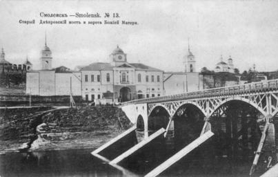 | Keywords: Dnieper gate in Smolensk 3.jpg en The bridge across the Dnieper River now destroyed the ruins and the Church of Our Lady of Smolensk now - the parochial school Dnieper gate ru ост че ез Днеп ныне аз ушен сох анились уины и це ковь Смоленской Богомате и ныне - це ковно-п иходская школа Днеп овские во ота О игинальная отк ытка е установлены before 1917 года PD-RusEmpire 20th-century postcards of Russia Postcards of Smolensk Dnieper River in Smolensk | ||||