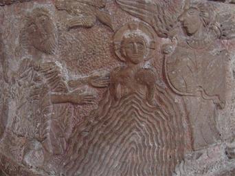 Keywords: Døbefonten Dalby Kirke.JPG Døbefont Dalby kirke detalje own 2010-06 Orf3us Baptismal font in Dalby heligkorskyrka Churches in Sweden photographed in 2010 2010 in Lund Municipality June 2010 in Sweden