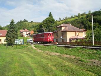 Keywords: Dobroc CHZ train.JPG Čierny Hron Railway leaving Dobroč station towards Čierny Balog 2014-08-19 09 14 14 own Jan Pešula cc-zero Uploaded with UploadWizard Čierny Balog Čiernohronská železnica