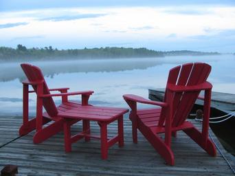 Keywords: dock adirondack river water tranquil landscape fog wilderness peaceful relaxation serene calm