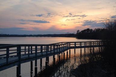 Keywords: dock sunset walkway peaceful tranquil sky water boardwalk dusk lake scenic outdoor outside professional