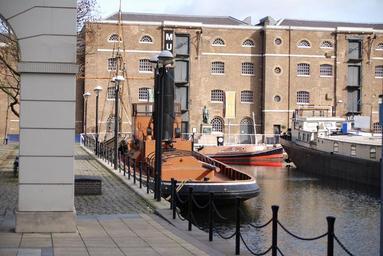 Keywords: docklands canary wharf london boats water railings