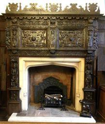 | Keywords: DodderidgeChimneypiece 1617 Barnstaple.JPG 1617 decoratively carved oak chimneypiece formerly in the Dodderidge House Cross Street Barnstaple decorated with two strapwork panels inhabited by putti and showing at middle top the date 1617 with to the left the initials PD for Pentecost Dodderidge d circa 1650 and to right ED for Elizabeth Wescombe his wife Now in the Dodderidge Room in the Barnstaple Guildhall with other oak panelling from Dodderidge House Lamplugh Lois Barnstaple Town on the Taw South Molton 2002 p 134 own photo 2013 Lobsterthermidor <span class signature-talk ></span> 17 54 8 June 2014 UTC Buildings in Barnstaple Fireplaces in Devon |